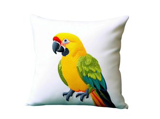 Декоративная, интерьерная подушка с вышивкой в виде желтого попугая с зелеными крыльями. Подушка из белой ткани хлопок и лён. Вышивка выполнена надежными нитками из акрила. Благодаря своей прочности, выдерживают стирку в стиральной машине, не садятся и не теряют цвет. Можно стирать при температуре до 60 градусов. Сзади подушки молния. Наполнитель синтепон в белом напернике который можно вытаскивать и так же стирать. С внутренней стороны подушки, бирка на русском языке с техничекими данными, рекомендациями по стирке и уходу, с логотипом TheVitrine. Ограниченный тираж!