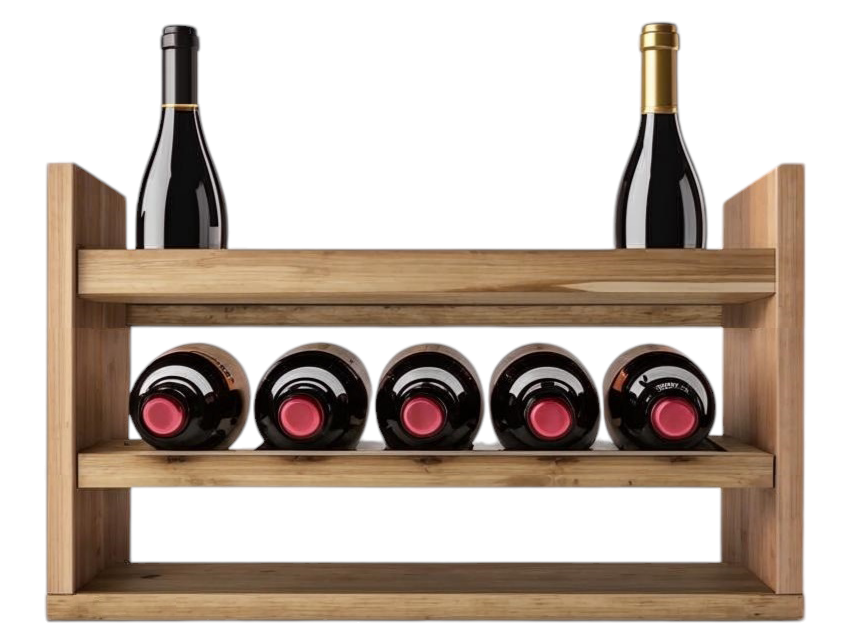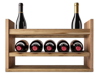 Настольная полка для хранения десяти бутылок вина. У полки два яруса и нижняя полка для хранения мелочей. На среднем ярусе помещается 5 классических бутылок вина типа бордо. На верхнем ярусе можно хранить как классические бутылки вина, так и бутылки с шампанским или игристым. Вместимость 10 бутылок, по 5 бутылок на каждый ярус. Полка производится из двух пород дерева - ясеня и бука.