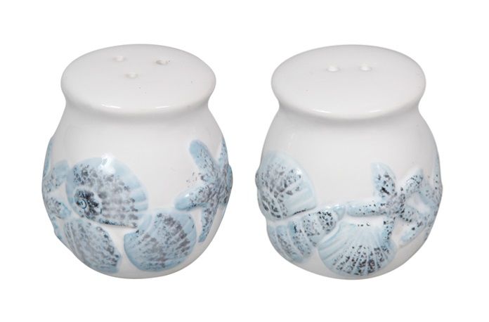 Керамические солонка и перечница с морским барельефом - морские звезды и ракушки. Цвет белый, барельеф как на фото.
