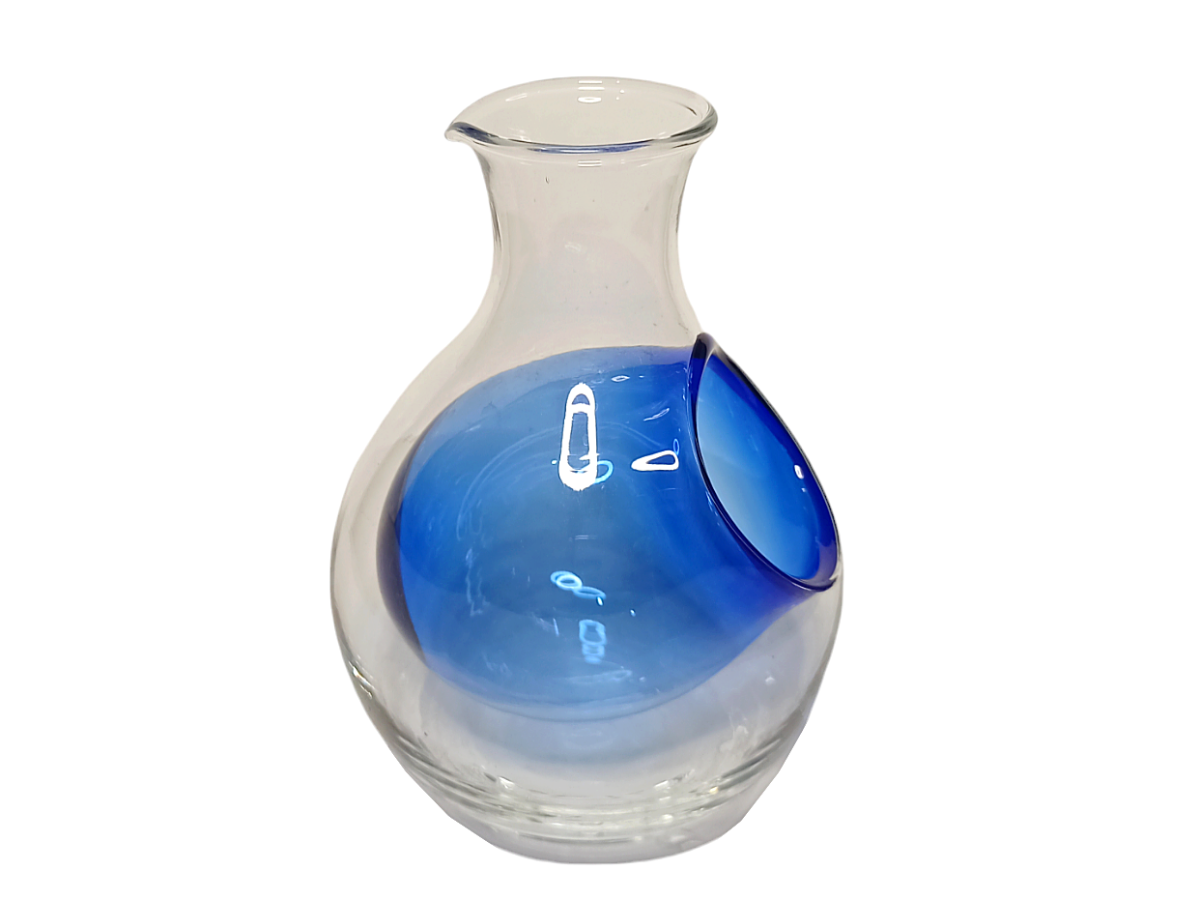 Эксклюзивная солонка и графин для масла из дутого стекла, для сервировки стола. Голубая часть внутри основной колбы, предсталяет из себя внутренню полость для соли или специй. Остальная часть с носиком, представляет ёмкость для оливкового, растительного или прочего жидкого масла. Благодаря необычной форме, когда вы хотите налить масло, из солонки ничего не просыпится, так как она поднимается вверх. Очень красиво, данный аксессуар, смотрится с морской солью и оливковым маслом с парочкой веточек розмарина или любой другой ароматной зелени.
