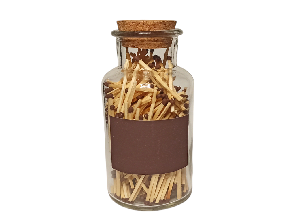 Набор спичек в аптекарской банке из прозрачного стекла и большой пробковой крышкой. В банке 200 штук, классических спичек с коричневой головкой. На самой банке большой чиркающий слой. Идеальное дополнение к вашей коллекции ароматических свечей! Большая банка стильно выделяется на общем фоне с ароматическими свечами в банках и стеклянных стаканах. Идеальное решение для подарка, когда в подарочный комплект с соевыми свечами, можно положить такую большую банку со спичками.
