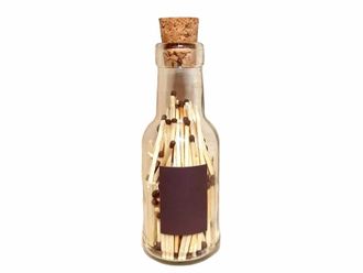 Спички в стеклянной бутылочке с крышкой из пробкового дерева. Полностью экологичный состав! Только стекло, дерево и бумага.