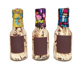 Набор обычных спичек в стеклянной, декоративной банке-бутылки с пластиковой пробкой. Позволяет хранить спички во влажных местах.