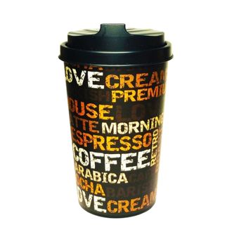 Стакан для кофе из однослойного пластика с крышкой, для многоразового использования. Подойдет для людей, которые не выходят из дома без стаканчика "кофе с собой", и тех, кто заботится об окружающей среде, и предпочитает многоразовый стаканчик для кофе, одноразовым бумажным. Стакан сделан из тонкого, прочного пищевого пластика, толщиной 1,5 мм. На стакане есть несмываемый принт из слов разных шрифтов: espresso, coffee, arabica, mocha, latte. Идеальный подарок для любителей кофе. Цвет стакана черный.