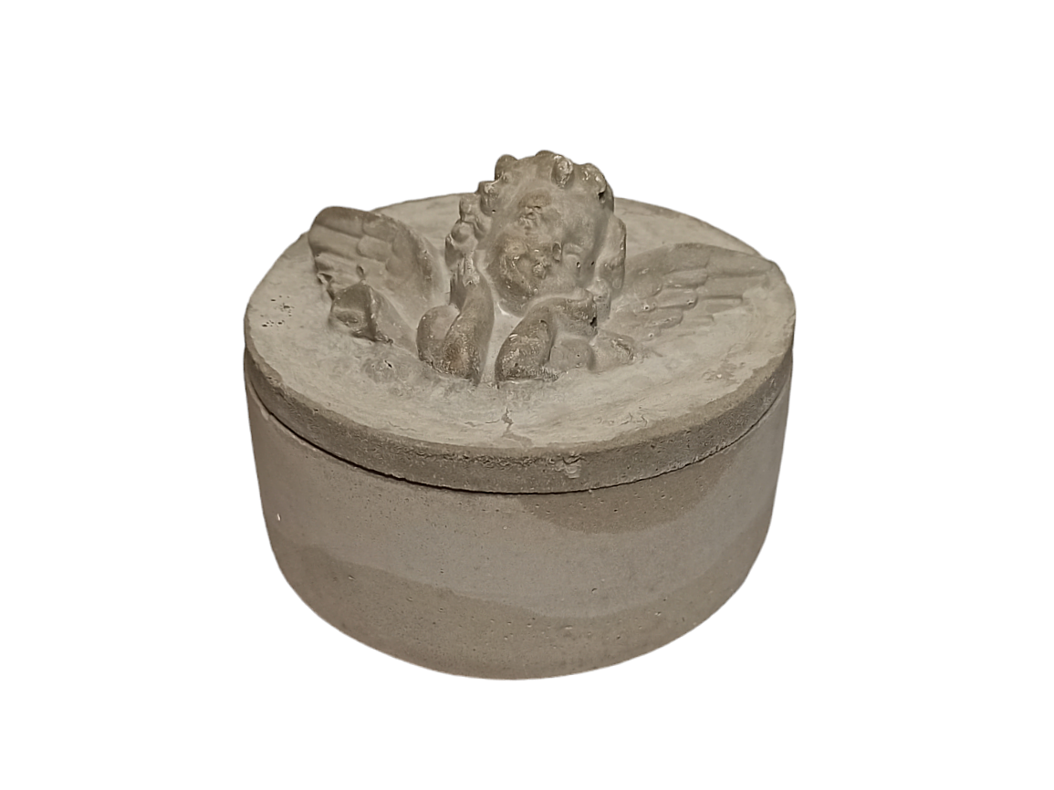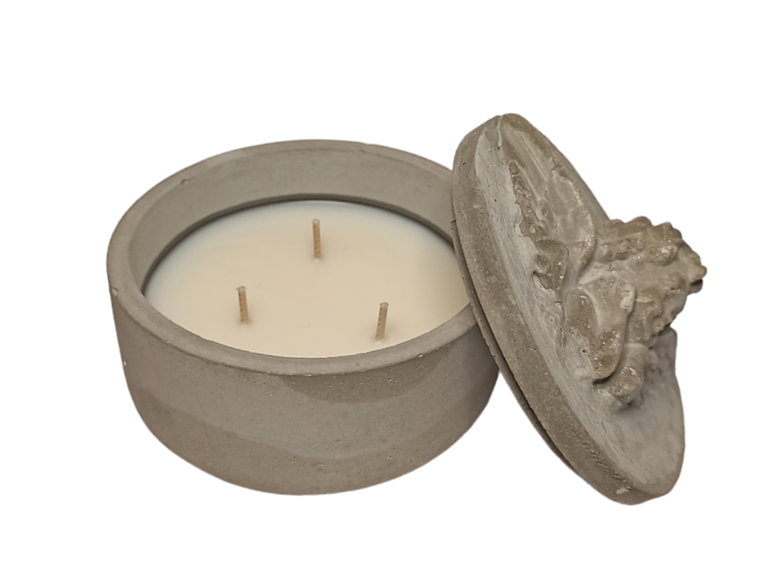 Свеча в бетонной чаше с крышкой, с барельефом ангела. Искуственно состаренный бетон в винтажном стиле отсылает нас в прошлое. Данная ароматическая свеча создает полную иллюзию что она была сделана где-то в 18 веке, и вот она оказалась у вас в интерьере. Состав свечи это соево-кокосовый бленд с ароматом цветков и коры цитруса Юдзу. Легкий, свежий и цитрусовый аромат дополняет легкая древесная нота. У свечи три фитиля. Объем воска 100 мл. Состав формы свечи 100% бетон.