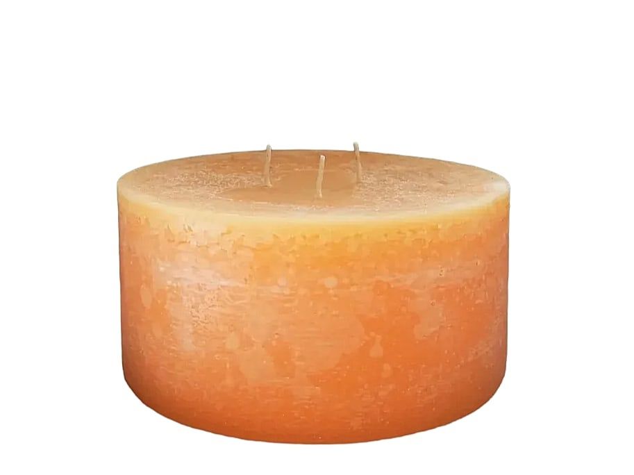 Большая свеча оранжевого цвета, в стиле рустик, с фактурной поверхностью и тремя фитилями. Свечи такого формата, высотой всего 7 см, будут отлично смотреться на столах, каминных полках, больших подоконниках и в каминных нишах. Свеча имеет аромат цитруса. Подчёркиваем, это не ароматическая свеча а именно ароматизированная! Она будет только слегка, и еле ощутимо отдавать аромат в помещение при горении. Свеча такого размера, идеальный и эксклюзивный подарок.