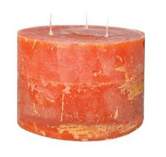 Большая интерьерная свеча терракотового цвета в форме цилиндра с тремя фитилями. Свеча имеет фактурную естетсвенную поверхность со следами заливки свечной массы. Вес свечи, примерно 1,850 гр +-50 гр.