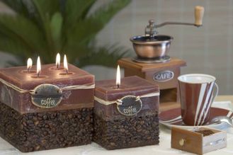 Декоративная свеча в форме куба с зернами кофе коричневого цвета. Все свечи данной модели имеют неоднородную, рустикальную фактуру и их с уверенностью можно назвать свечами ручной работы. Свеча без дополнительного аромата но имеет естественный аромат кофейных зерен. Свеча упакована в прозрачную подарочную пленку. Свеча поставляется без бирки "Кофе".