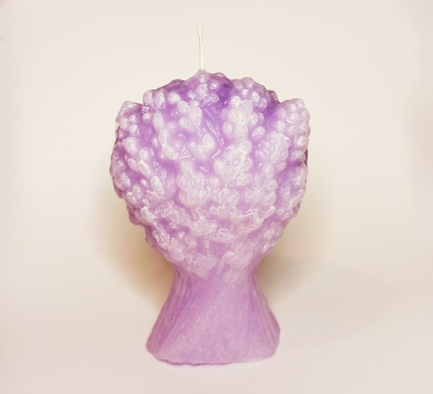 Декоративная, ароматическая свеча в форме связки куста лаванды. Свеча поставляется в подарочном, прозрачном пакете.