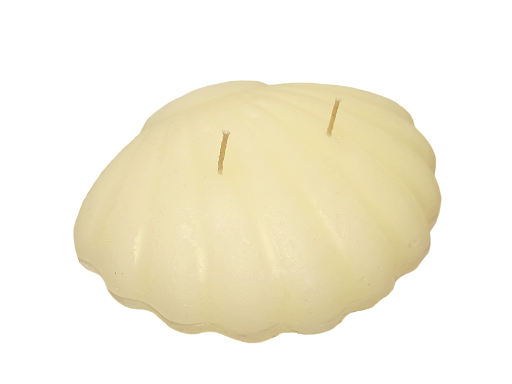 Декоративная свеча в форме морской раковины в цвете слоновая кость. Свеча имеет два фитиля. Упакована в подарочный пакет.
