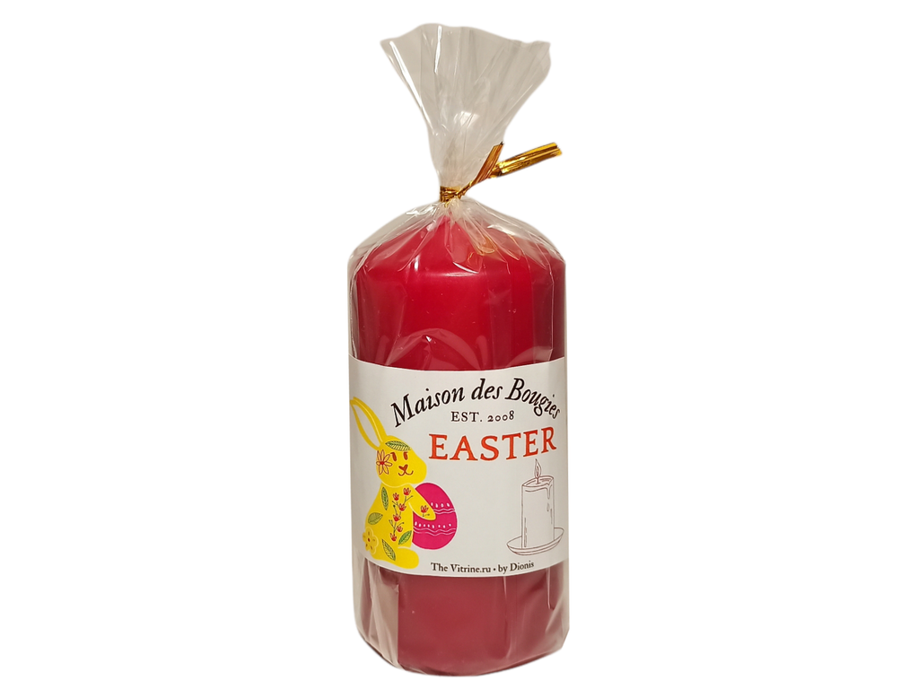 Свеча в виде столбика на Пасху. Послужит в качестве подарка и презента на пасхальные праздники, как отдельно, так и в составе пасхальной корзины. Цвет свечи - вишневый бордо. Без аромата. Лимитированная коллекция! Ограниченный тираж.