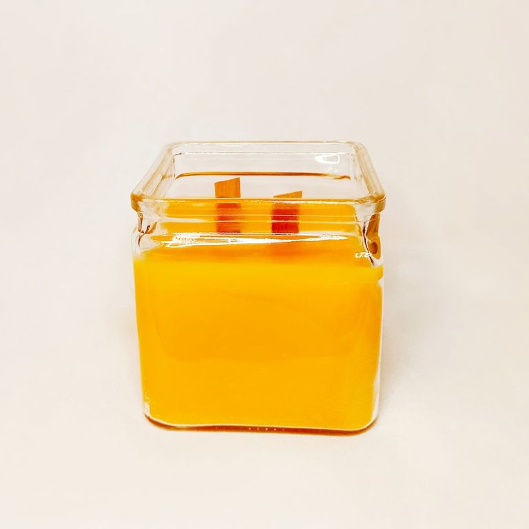 Большая свеча-биокамин с двумя деревянными фитилями. Аромат Оранж Лемонграсс. Первые ноты сладкого цитрусового микса с послевкусием шоколада, вторая, шлейфовая нота, "зеленая", освежающая, с ароматом Лемонграсса.