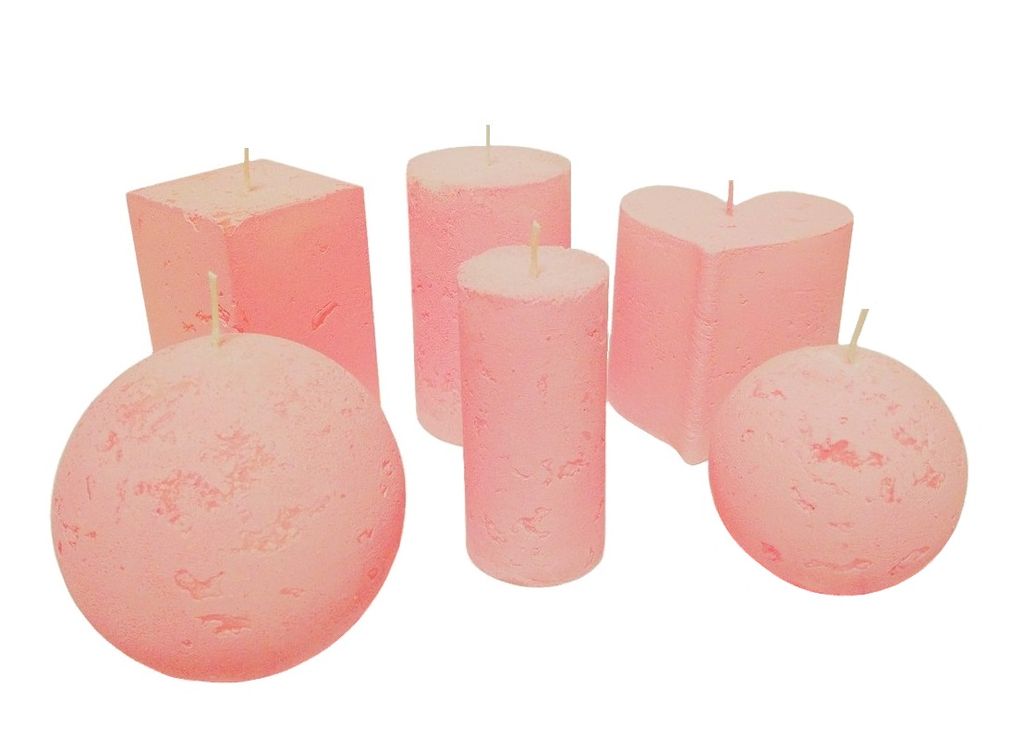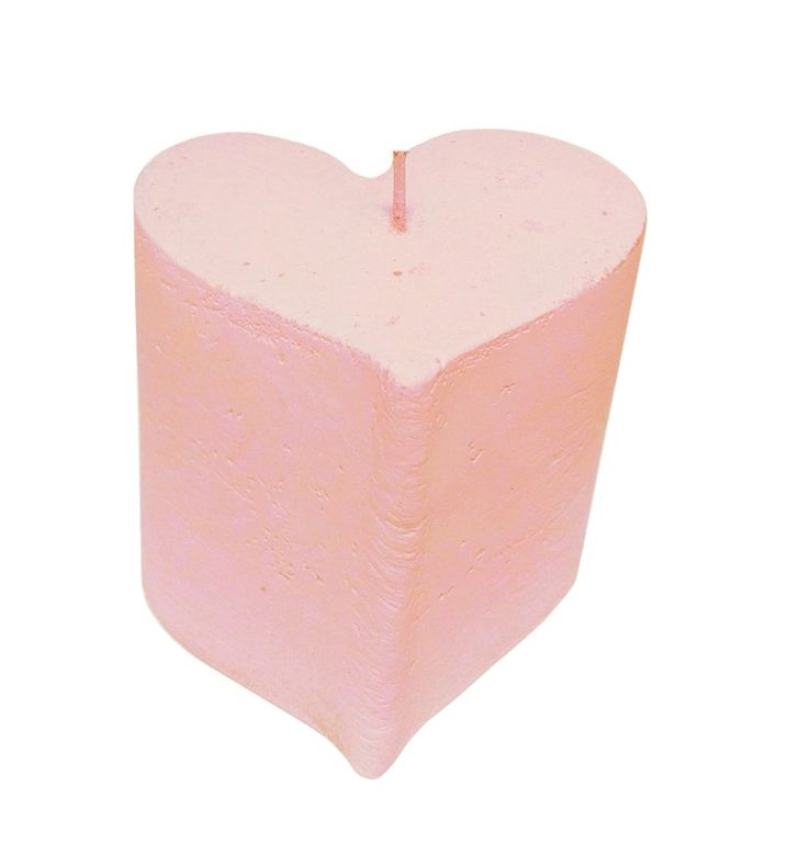 Свеча столбик в форме сердца с фактурной рустикальной поверхностью, мягкого, розового цвета. Цвет свечи как фото.