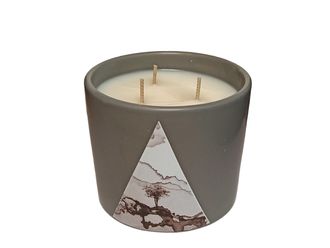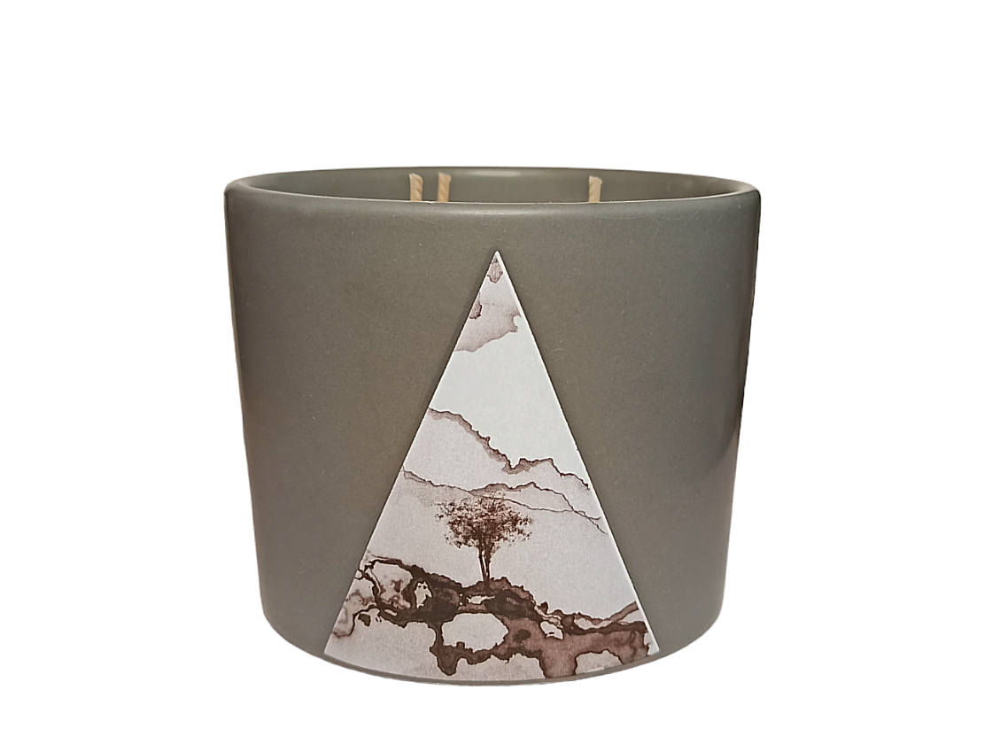 Свеча из соевого воска в керамическом стакане с принтом, с красивым арт-изображением дерева в треугольнике. Керамический стакан выполнен в сером цвете, а принт, в приглушенных тонах природных оттенков. Свеча подойдет для любого пространства, от строгой и минималистичной квартиры в скандинавском стиле, до дома в рустикальном, кантри стиле. Отличный предмет интерьера, подарок и презент коллеге. Для ароматизации помещения, площадью +-15 кв.м, достаточно зажигать свечу на 10-15 минут.
