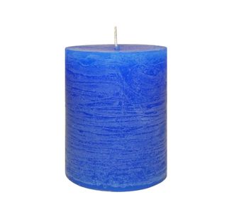 Свеча в виде цилиндра столбика с рустикальной, фактурной поверхностью, синего цвета.