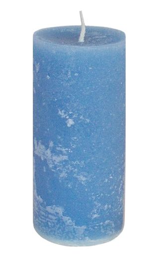 Свеча столбик в рустикальном стиле с фактурной поверхностью. Цвет свечи - голубой.