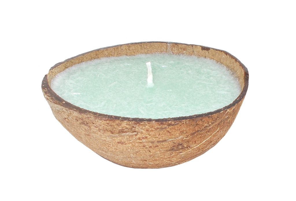 Свеча в половинке кокосового ореха, с ароматом зеленого чая.