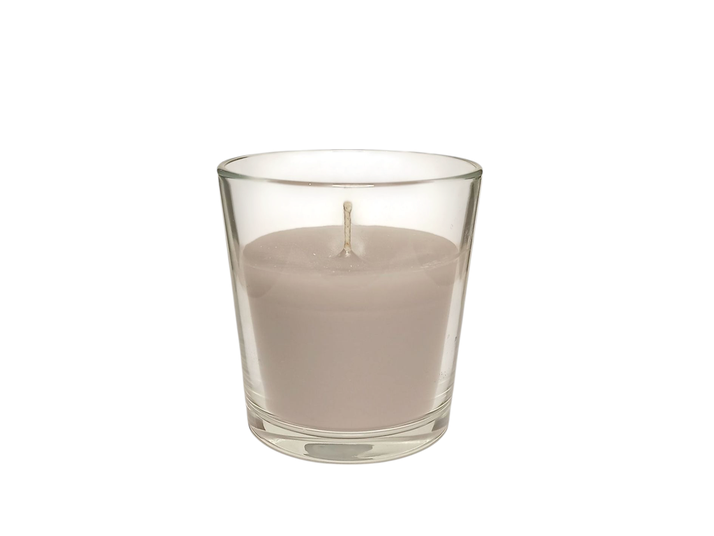 Парафиновая свеча в стакане без запаха, серого цвета. Дешёвая свеча серии эконом, объёмом 150 мл.