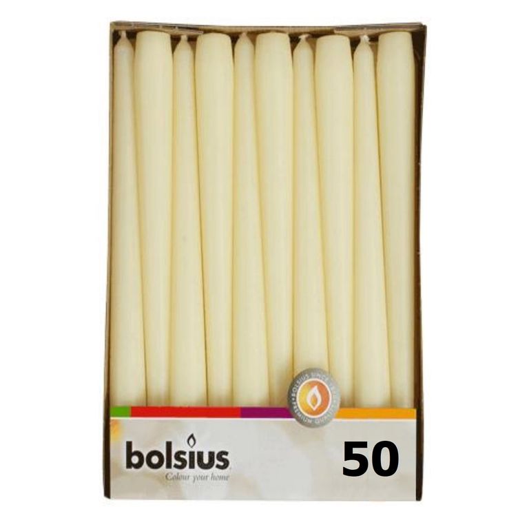 Свечи античные слоновая кость 25 см (50 штук).