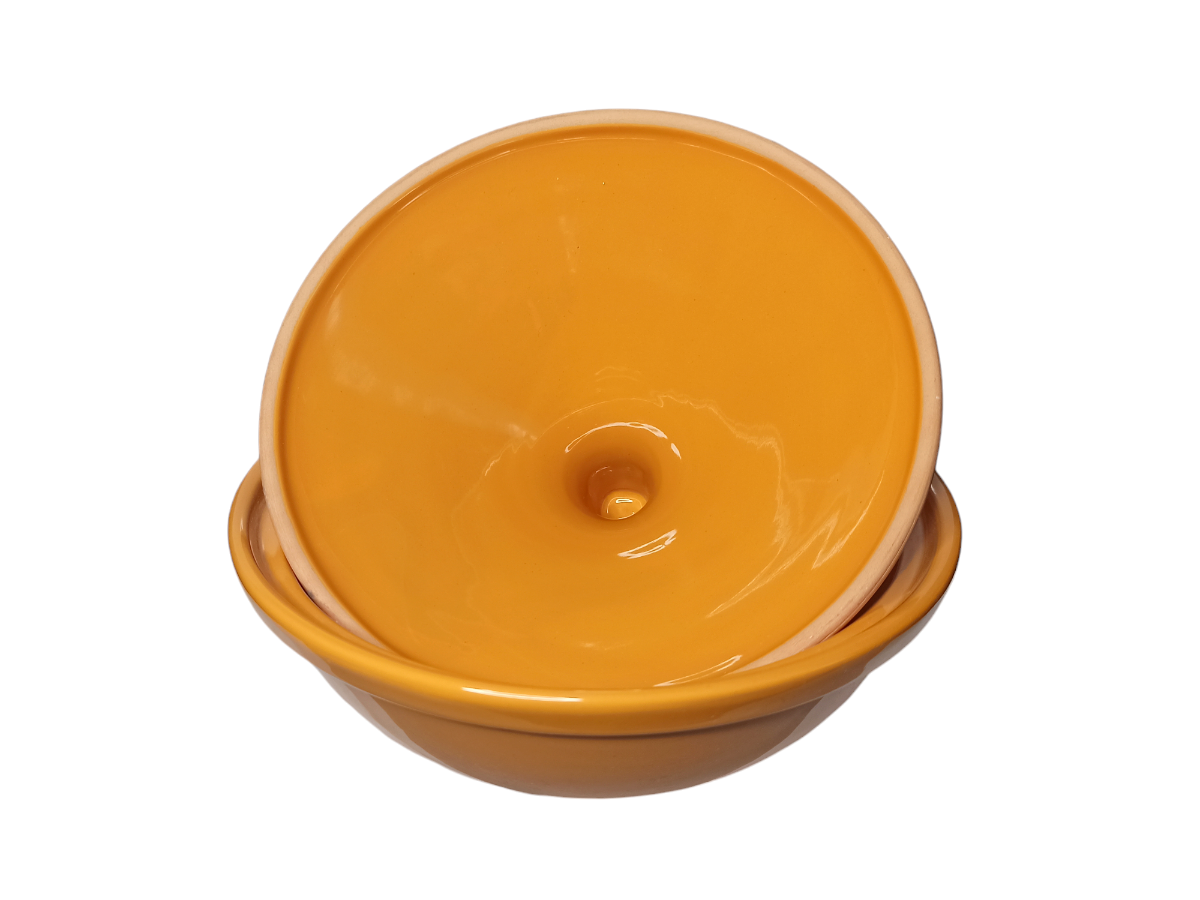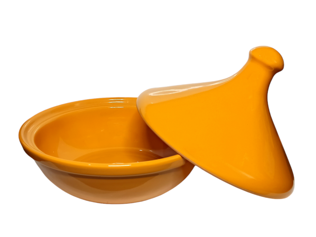 Классический тажин (таджин) для приготовления блюд методом томления, тушения, пришедший к нам из стран Магриба. Подходит для приготовления закусок с последующей подачей на стол. Цвет выполнен в классическом терракотово-оранжевом оттенке.