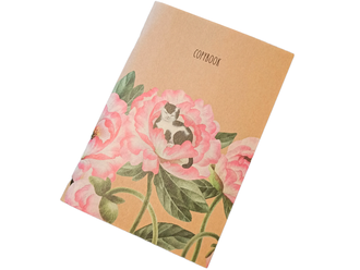 Крафтовая ЭКО тетрадь, записная книжка, блокнот для записей в клетку. Классические естественно-белые листы (без отбеливания) в клетку в крафт-картоне с изображением кошки отдыхающей в пионах. Стильный презент подруге, коллеге или приятная покупка, чтобы порадовать себя. Данная тетрадь относится к более экологичному классу, так как при ее создании не использовались сильные химические компоненты для отбеливания бумаги (целлюлозы).