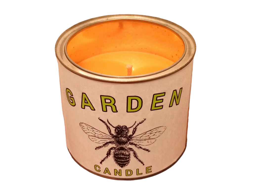 Большая уличная свеча в металлической банке с наклейкой, с изображением пчелы и надписью Candle Garden. Благодаря толстому, хлопковому фитилю, свеча не тухнет даже на сильном ветру и при небольшом, моросящем дожде. Идеальное решение для декора сада, террасы или входной группы в бутик отель, оранжерею, или загородный ресторан. Свеча без запаха.