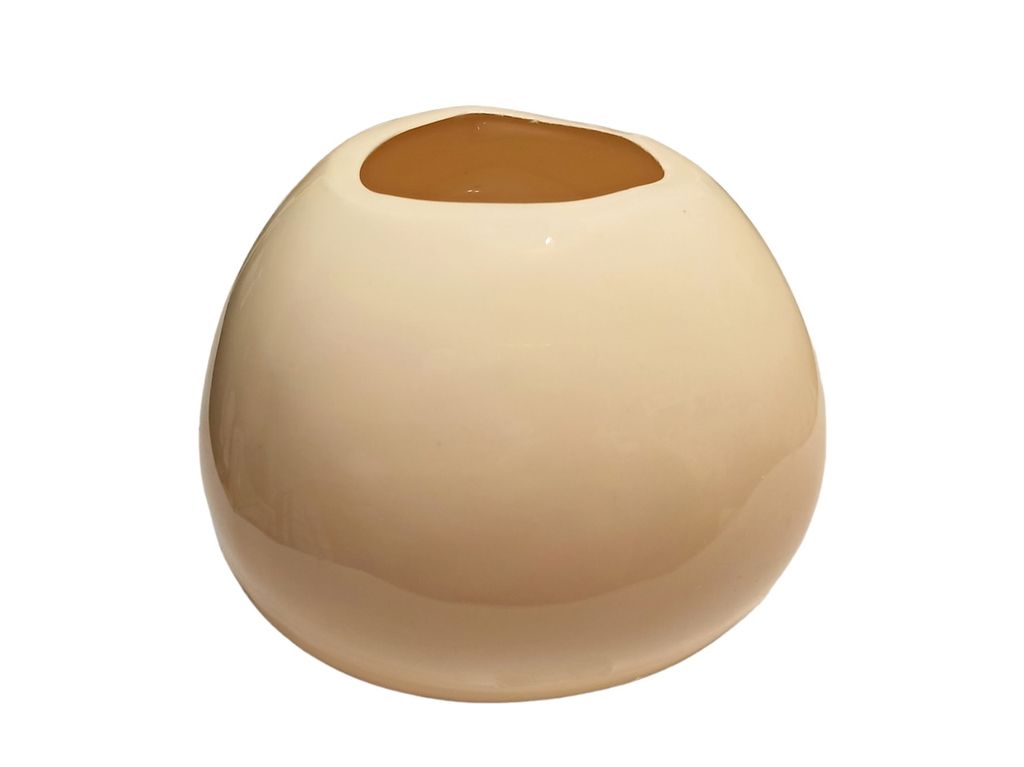 Округлая ваза из керамики, цвета слоновая кость с тремя размытыми гранями. Подойдет для цветочных композиций, для установки каскадом, трех и более ваз подряд в качестве декора, или как ваза для сухоцветов или мелочей. В качестве акцентного декора на столик в ресторан или кофейню.